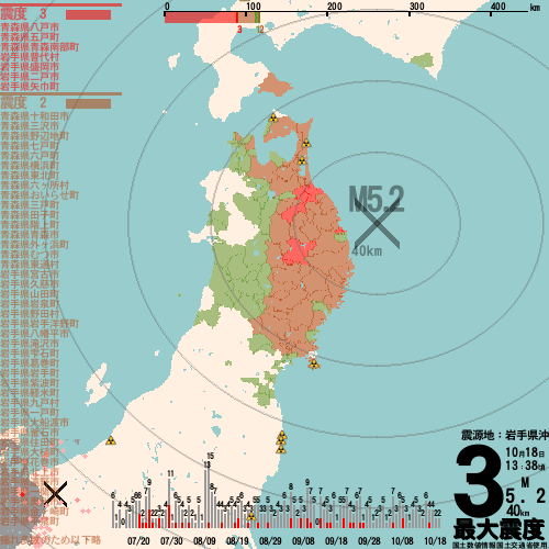 ◆気象庁の地震情報を引用加工して、独自の地図を生成し、表示しています。