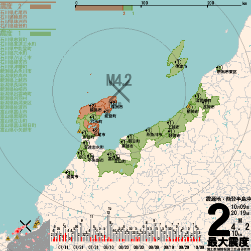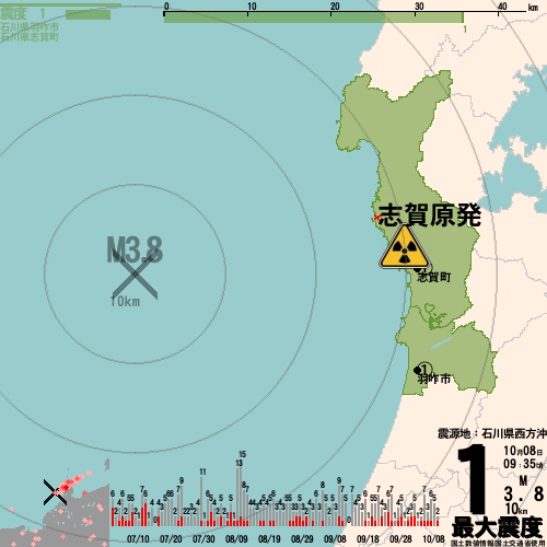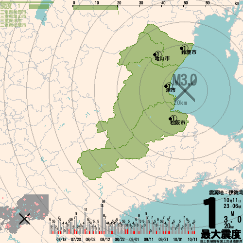 日本の地震の震度情報を、市区町村単位で、地図に描きます。地震は、地盤によって意外な揺れ方をしており、一概に近いほど揺れている訳ではありません。震度3以上の地震はプッシュ通知でお知らせします。津波注意報・津波警報が出ている場合、その旨を文字とともに、海を赤色に描画して警告します。過去の地震も閲覧できます。原子力発電所との位置関係を把握可能。