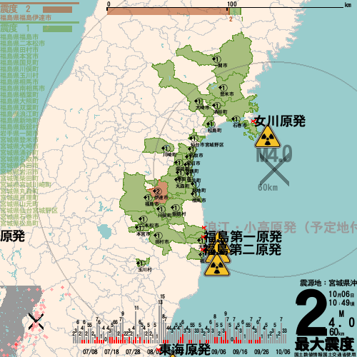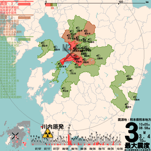 日本の地震の震度情報を、市区町村単位で、地図に描きます。地震は、地盤によって意外な揺れ方をしており、一概に近いほど揺れている訳ではありません。震度3以上の地震はプッシュ通知でお知らせします。津波注意報・津波警報が出ている場合、その旨を文字とともに、海を赤色に描画して警告します。過去の地震も閲覧できます。原子力発電所との位置関係を把握可能。