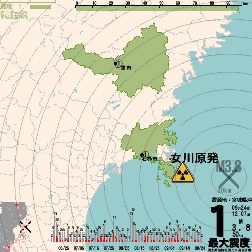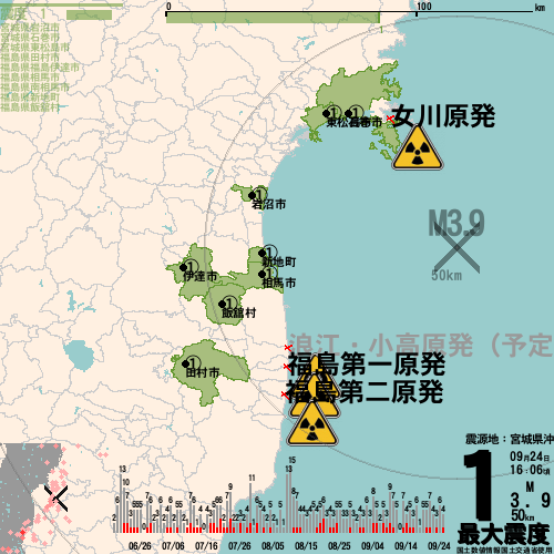 日本の地震の震度情報を、市区町村単位で、地図に描きます。地震は、地盤によって意外な揺れ方をしており、一概に近いほど揺れている訳ではありません。震度3以上の地震はプッシュ通知でお知らせします。津波注意報・津波警報が出ている場合、その旨を文字とともに、海を赤色に描画して警告します。過去の地震も閲覧できます。原子力発電所との位置関係を把握可能。