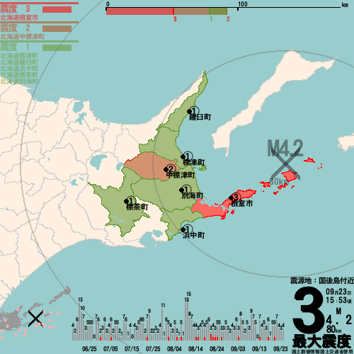◆気象庁の地震情報を引用加工して、独自の地図を生成し、表示しています。