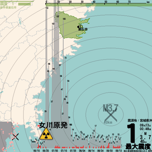 日本の地震の震度情報を、市区町村単位で、地図に描きます。地震は、地盤によって意外な揺れ方をしており、一概に近いほど揺れている訳ではありません。震度3以上の地震はプッシュ通知でお知らせします。津波注意報・津波警報が出ている場合、その旨を文字とともに、海を赤色に描画して警告します。過去の地震も閲覧できます。原子力発電所との位置関係を把握可能。
