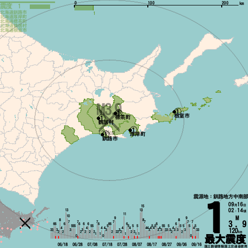 [ 最大震度 1 ]
