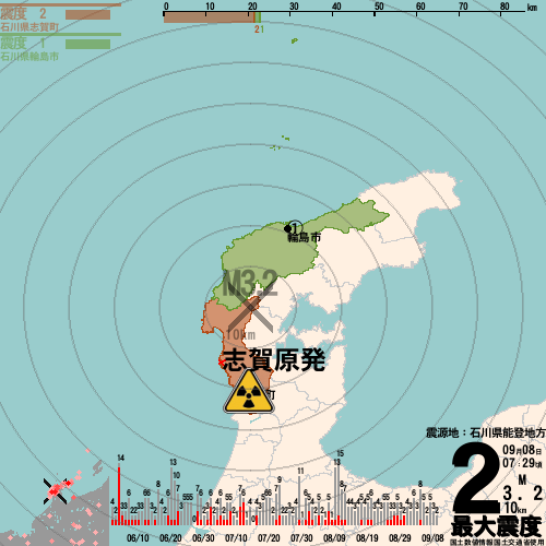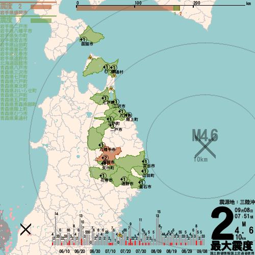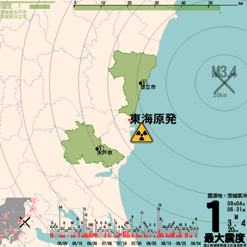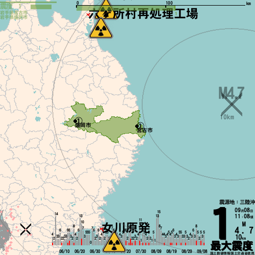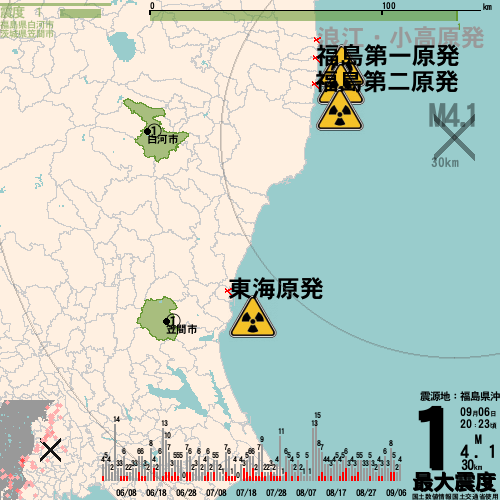 日本の地震の震度情報を、市区町村単位で、地図に描きます。地震は、地盤によって意外な揺れ方をしており、一概に近いほど揺れている訳ではありません。震度3以上の地震はプッシュ通知でお知らせします。津波注意報・津波警報が出ている場合、その旨を文字とともに、海を赤色に描画して警告します。過去の地震も閲覧できます。原子力発電所との位置関係を把握可能。