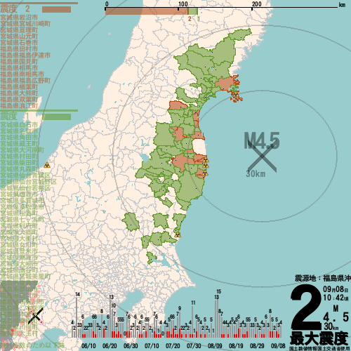 ◆気象庁の地震情報を引用加工して、独自の地図を生成し、表示しています。