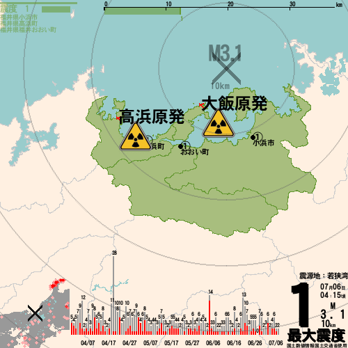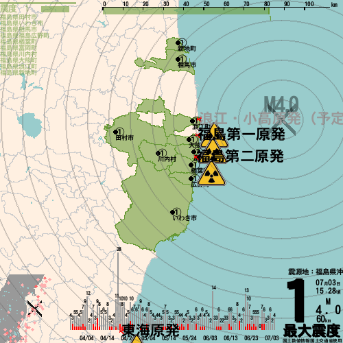 日本の地震の震度情報を、市区町村単位で、地図に描きます。地震は、地盤によって意外な揺れ方をしており、一概に近いほど揺れている訳ではありません。震度3以上の地震はプッシュ通知でお知らせします。津波注意報・津波警報が出ている場合、その旨を文字とともに、海を赤色に描画して警告します。過去の地震も閲覧できます。原子力発電所との位置関係を把握可能。