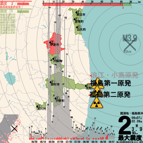 日本の地震の震度情報を、市区町村単位で、地図に描きます。地震は、地盤によって意外な揺れ方をしており、一概に近いほど揺れている訳ではありません。震度3以上の地震はプッシュ通知でお知らせします。津波注意報・津波警報が出ている場合、その旨を文字とともに、海を赤色に描画して警告します。過去の地震も閲覧できます。原子力発電所との位置関係を把握可能。