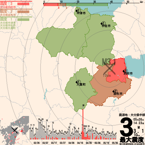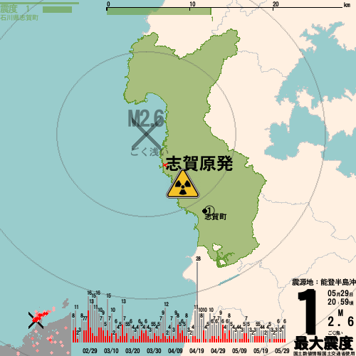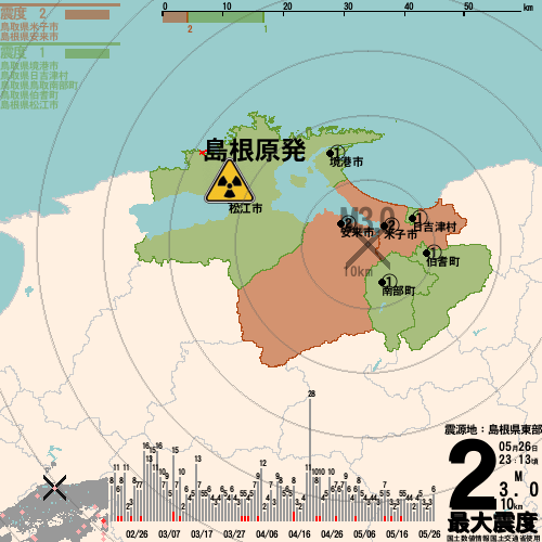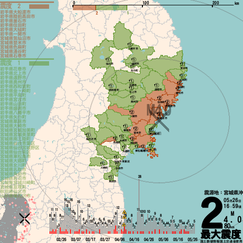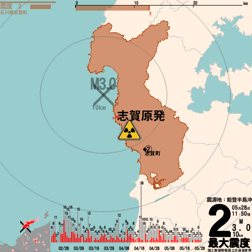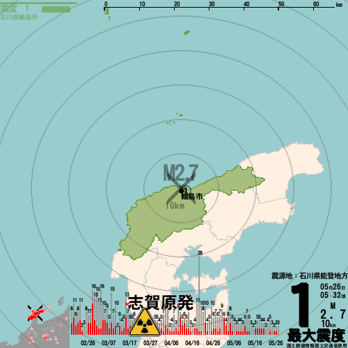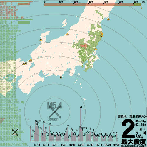 日本の地震の震度情報を、市区町村単位で、地図に描きます。地震は、地盤によって意外な揺れ方をしており、一概に近いほど揺れている訳ではありません。震度3以上の地震はプッシュ通知でお知らせします。津波注意報・津波警報が出ている場合、その旨を文字とともに、海を赤色に描画して警告します。過去の地震も閲覧できます。原子力発電所との位置関係を把握可能。
