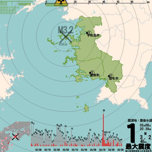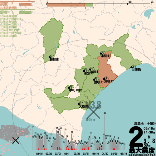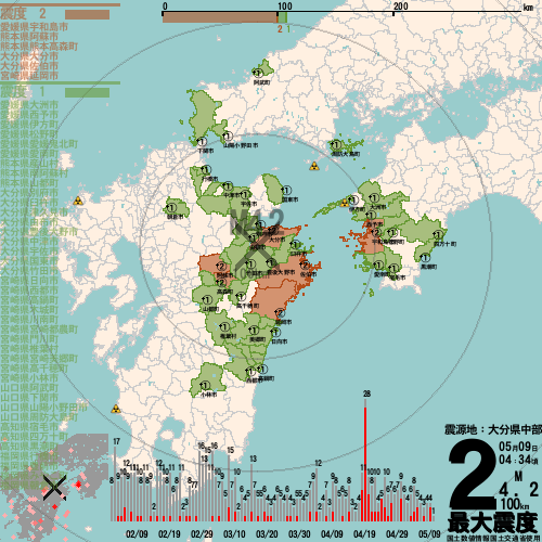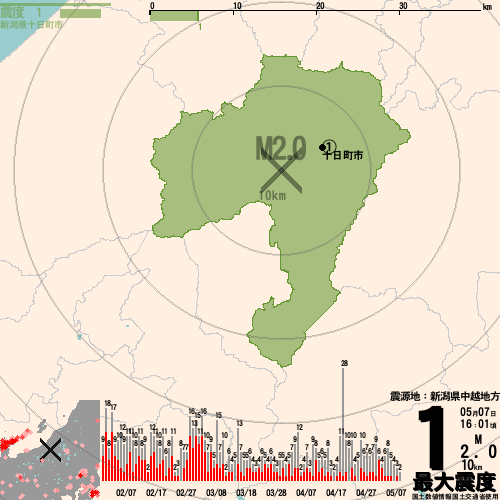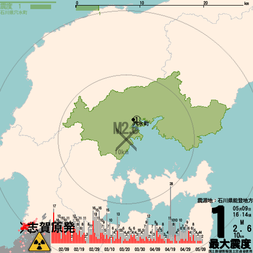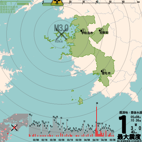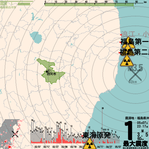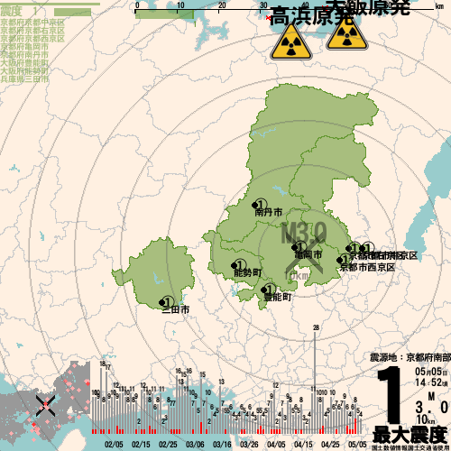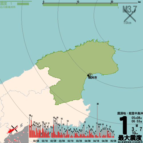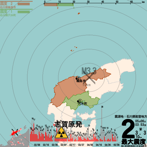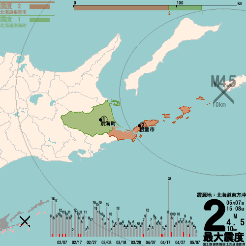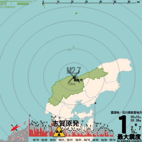日本の地震の震度情報を、市区町村単位で、地図に描きます。地震は、地盤によって意外な揺れ方をしており、一概に近いほど揺れている訳ではありません。震度3以上の地震はプッシュ通知でお知らせします。津波注意報・津波警報が出ている場合、その旨を文字とともに、海を赤色に描画して警告します。過去の地震も閲覧できます。原子力発電所との位置関係を把握可能。