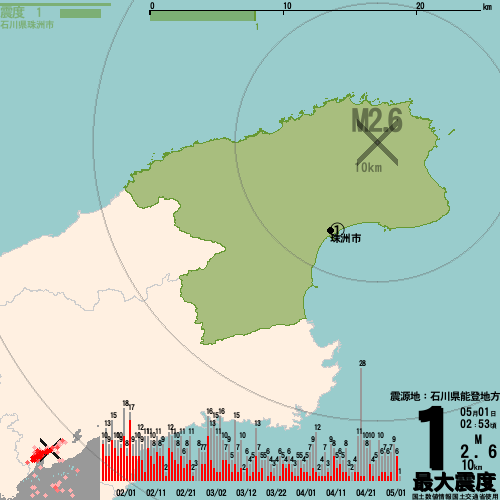 [ 最大震度 1 ]