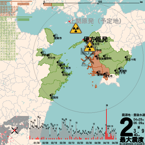 日本の地震の震度情報を、市区町村単位で、地図に描きます。地震は、地盤によって意外な揺れ方をしており、一概に近いほど揺れている訳ではありません。震度3以上の地震はプッシュ通知でお知らせします。津波注意報・津波警報が出ている場合、その旨を文字とともに、海を赤色に描画して警告します。過去の地震も閲覧できます。原子力発電所との位置関係を把握可能。