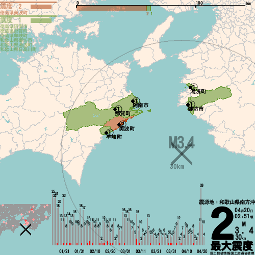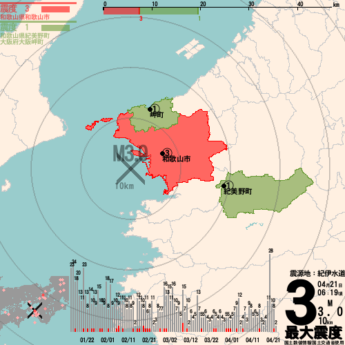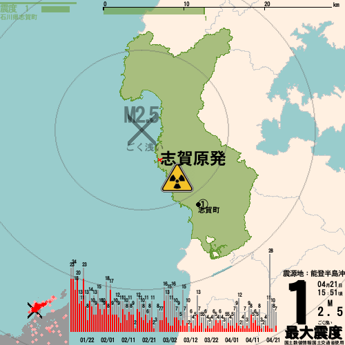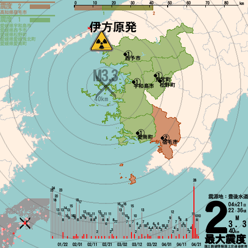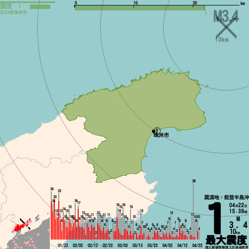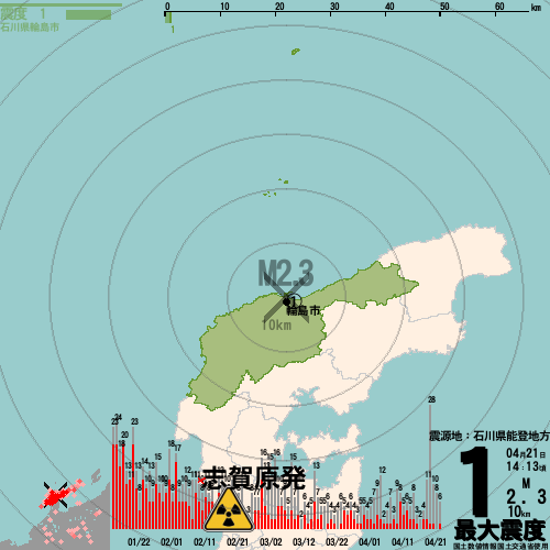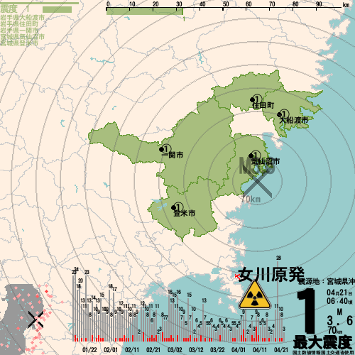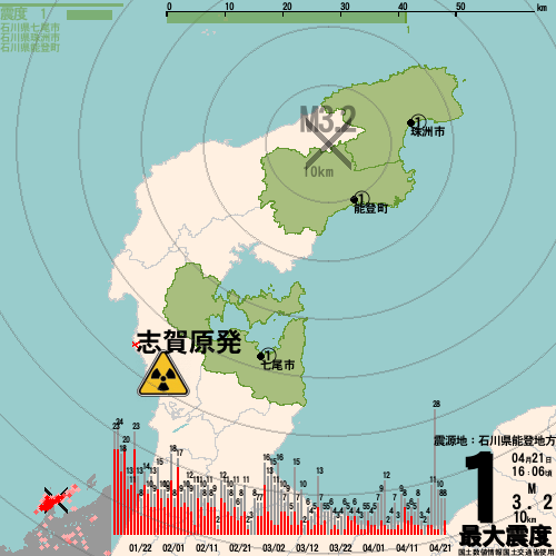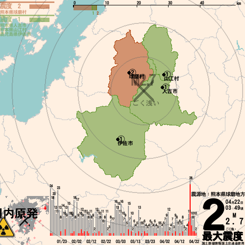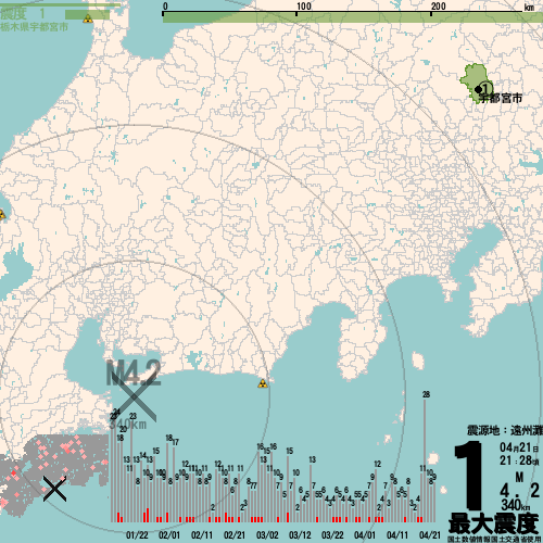 日本の地震の震度情報を、市区町村単位で、地図に描きます。地震は、地盤によって意外な揺れ方をしており、一概に近いほど揺れている訳ではありません。震度3以上の地震はプッシュ通知でお知らせします。津波注意報・津波警報が出ている場合、その旨を文字とともに、海を赤色に描画して警告します。過去の地震も閲覧できます。原子力発電所との位置関係を把握可能。