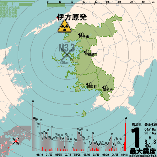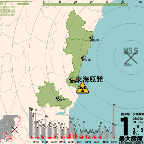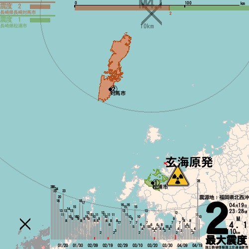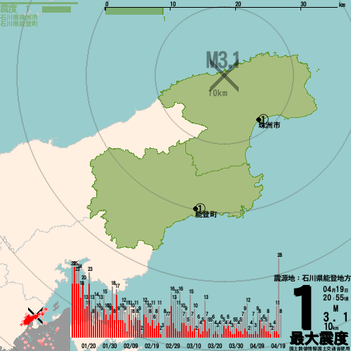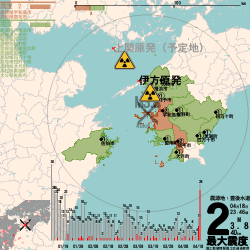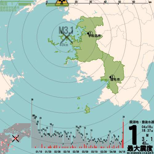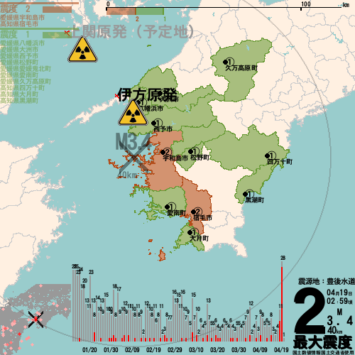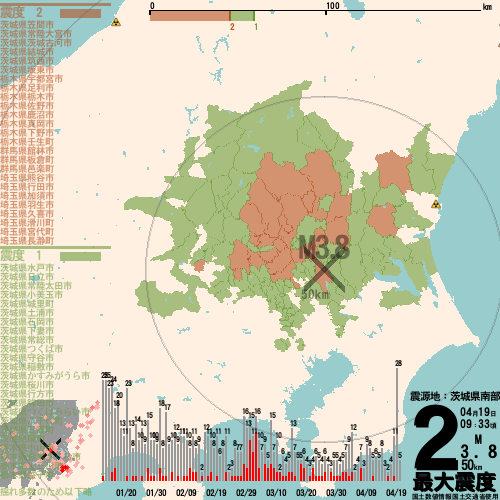 日本の地震の震度情報を、市区町村単位で、地図に描きます。地震は、地盤によって意外な揺れ方をしており、一概に近いほど揺れている訳ではありません。震度3以上の地震はプッシュ通知でお知らせします。津波注意報・津波警報が出ている場合、その旨を文字とともに、海を赤色に描画して警告します。過去の地震も閲覧できます。原子力発電所との位置関係を把握可能。