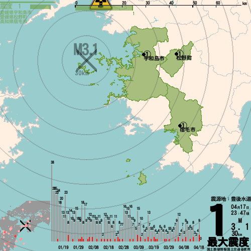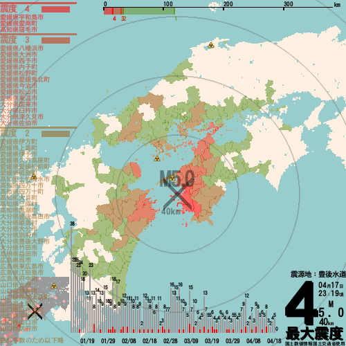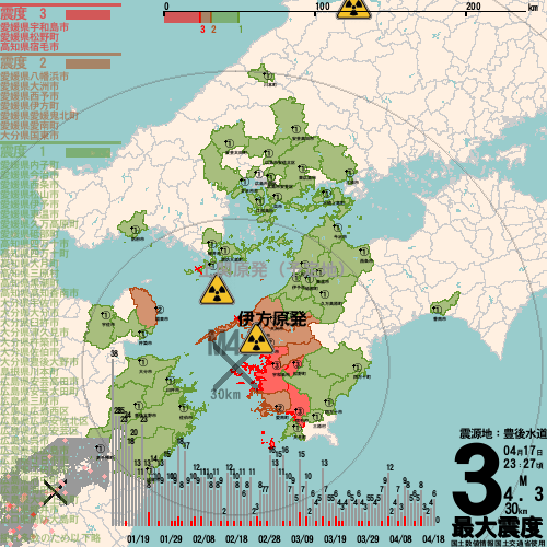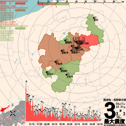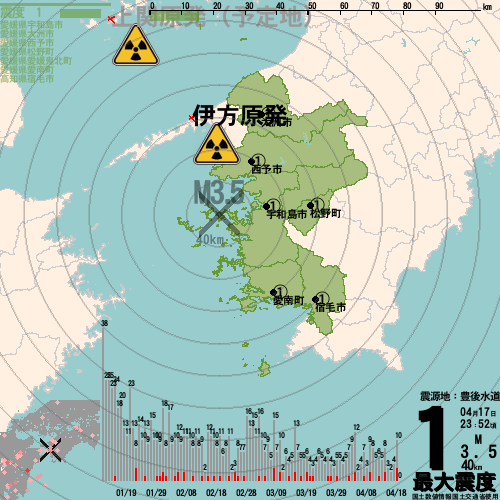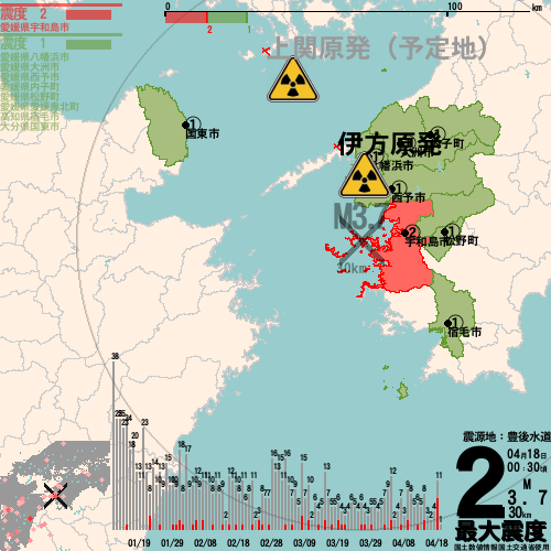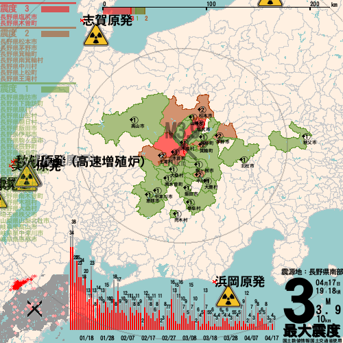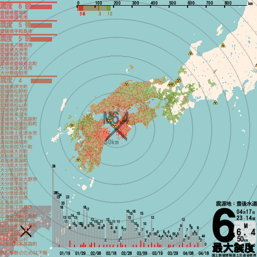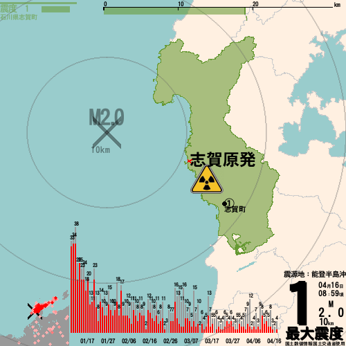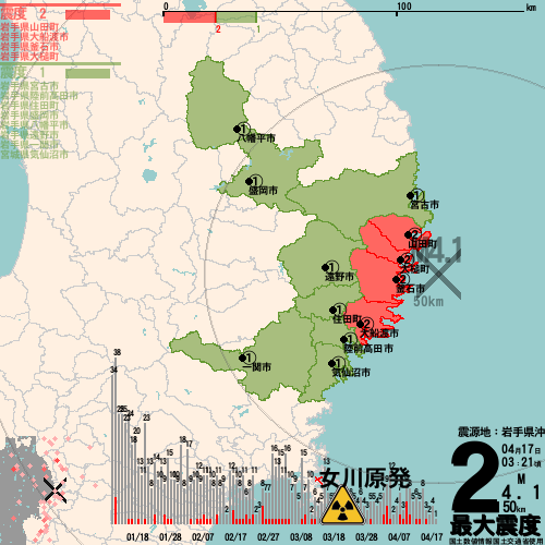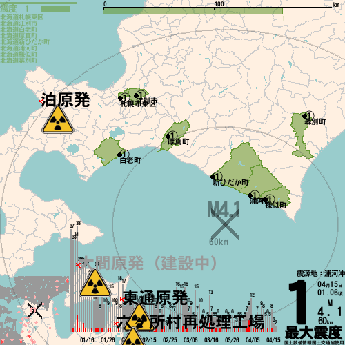 日本の地震の震度情報を、市区町村単位で、地図に描きます。地震は、地盤によって意外な揺れ方をしており、一概に近いほど揺れている訳ではありません。震度3以上の地震はプッシュ通知でお知らせします。津波注意報・津波警報が出ている場合、その旨を文字とともに、海を赤色に描画して警告します。過去の地震も閲覧できます。原子力発電所との位置関係を把握可能。