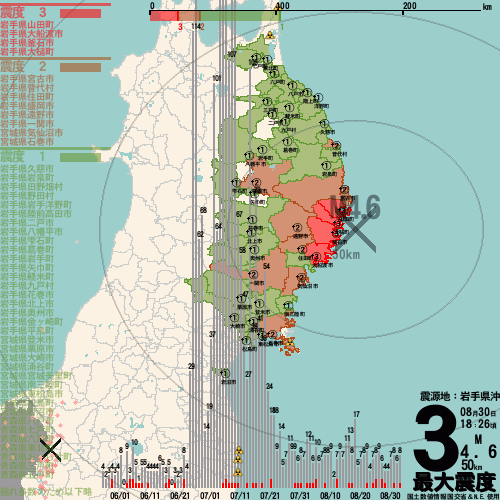 ◆気象庁の地震情報を引用加工して、独自の地図を生成し、表示しています。