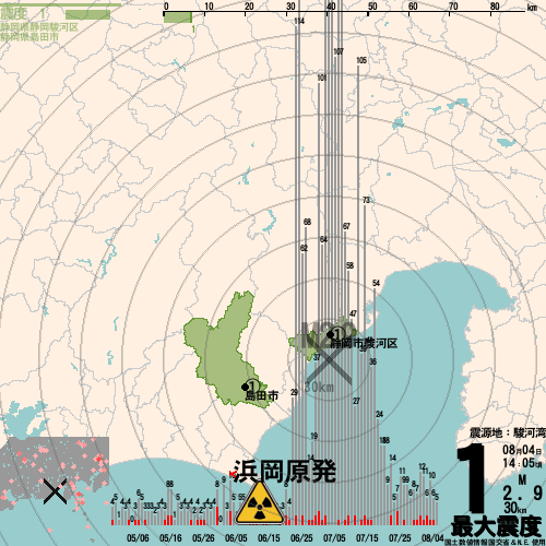 日本の地震の震度情報を、市区町村単位で、地図に描きます。地震は、地盤によって意外な揺れ方をしており、一概に近いほど揺れている訳ではありません。震度3以上の地震はプッシュ通知でお知らせします。津波注意報・津波警報が出ている場合、その旨を文字とともに、海を赤色に描画して警告します。過去の地震も閲覧できます。原子力発電所との位置関係を把握可能。
