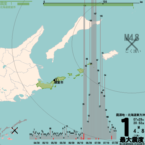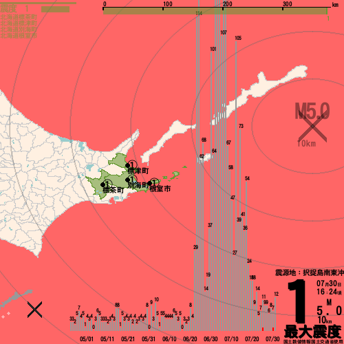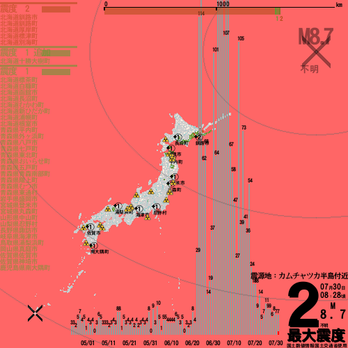 日本で起きた地震を、震度1以上を対象に描画。震度3以上の地震についてはプッシュ通知。津波注意報・津波警報が出ている場合、その旨を文字とともに、海を赤色に描画して警告。過去10回の地震の閲覧。Twitterでのスムーズな情報共有。地図の生成には、気象庁の公開している地震情報と、国土交通省の国土数値情報(行政区域・湖沼・市区町村役場)を利用しています。