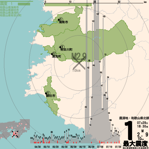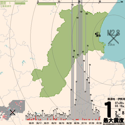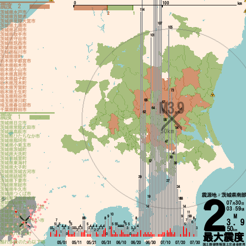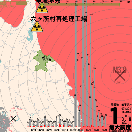 日本の地震の震度情報を、市区町村単位で、地図に描きます。地震は、地盤によって意外な揺れ方をしており、一概に近いほど揺れている訳ではありません。震度3以上の地震はプッシュ通知でお知らせします。津波注意報・津波警報が出ている場合、その旨を文字とともに、海を赤色に描画して警告します。過去の地震も閲覧できます。原子力発電所との位置関係を把握可能。