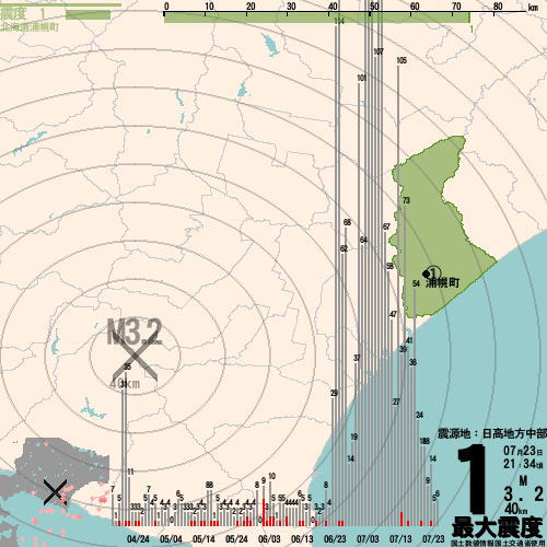 日本で起きた地震を、震度1以上を対象に描画。震度3以上の地震についてはプッシュ通知。津波注意報・津波警報が出ている場合、その旨を文字とともに、海を赤色に描画して警告。過去10回の地震の閲覧。Twitterでのスムーズな情報共有。地図の生成には、気象庁の公開している地震情報と、国土交通省の国土数値情報(行政区域・湖沼・市区町村役場)を利用しています。