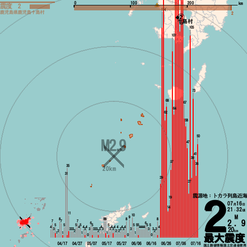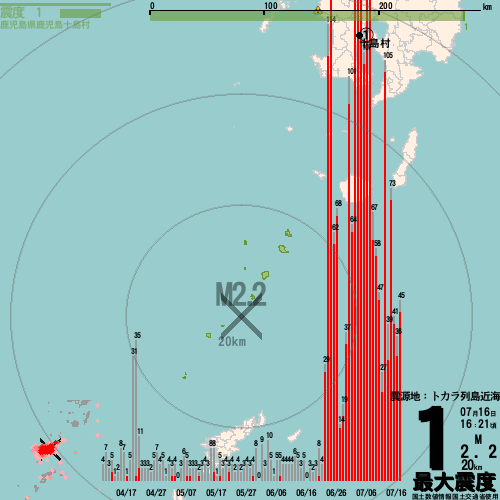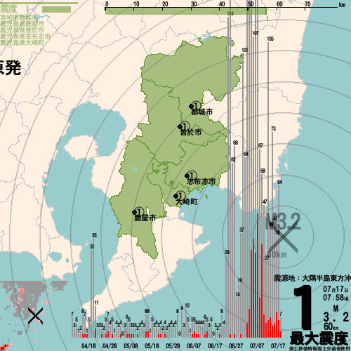 日本の地震の震度情報を、市区町村単位で、地図に描きます。地震は、地盤によって意外な揺れ方をしており、一概に近いほど揺れている訳ではありません。震度3以上の地震はプッシュ通知でお知らせします。津波注意報・津波警報が出ている場合、その旨を文字とともに、海を赤色に描画して警告します。過去の地震も閲覧できます。原子力発電所との位置関係を把握可能。
