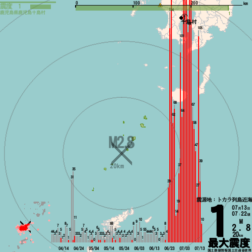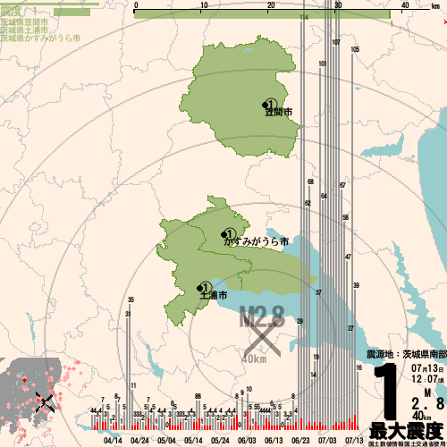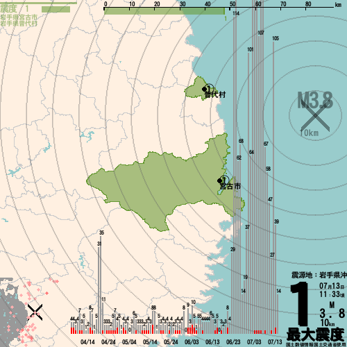 日本の地震の震度情報を、市区町村単位で、地図に描きます。地震は、地盤によって意外な揺れ方をしており、一概に近いほど揺れている訳ではありません。震度3以上の地震はプッシュ通知でお知らせします。津波注意報・津波警報が出ている場合、その旨を文字とともに、海を赤色に描画して警告します。過去の地震も閲覧できます。原子力発電所との位置関係を把握可能。