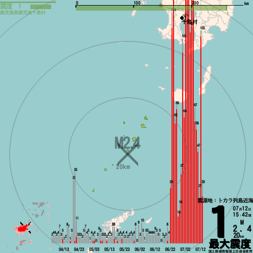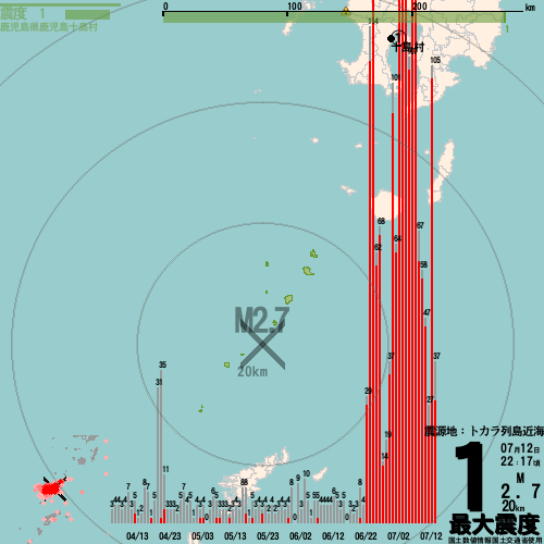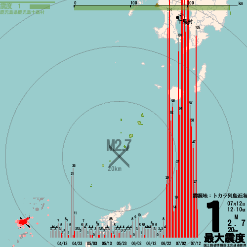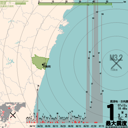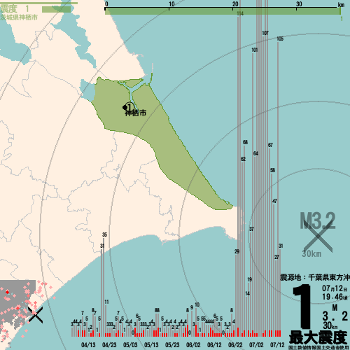日本の地震の震度情報を、市区町村単位で、地図に描きます。地震は、地盤によって意外な揺れ方をしており、一概に近いほど揺れている訳ではありません。震度3以上の地震はプッシュ通知でお知らせします。津波注意報・津波警報が出ている場合、その旨を文字とともに、海を赤色に描画して警告します。過去の地震も閲覧できます。原子力発電所との位置関係を把握可能。