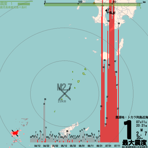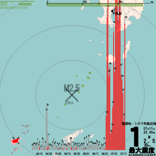 日本の地震の震度情報を、市区町村単位で、地図に描きます。地震は、地盤によって意外な揺れ方をしており、一概に近いほど揺れている訳ではありません。震度3以上の地震はプッシュ通知でお知らせします。津波注意報・津波警報が出ている場合、その旨を文字とともに、海を赤色に描画して警告します。過去の地震も閲覧できます。原子力発電所との位置関係を把握可能。