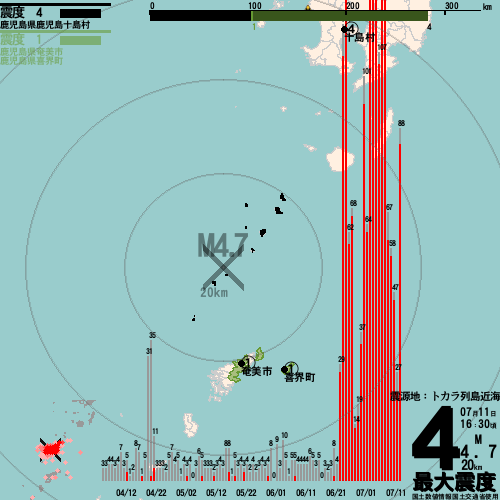 ◆気象庁の地震情報を引用加工して、独自の地図を生成し、表示しています。