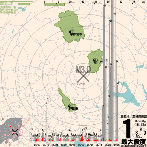 日本の地震の震度情報を、市区町村単位で、地図に描きます。地震は、地盤によって意外な揺れ方をしており、一概に近いほど揺れている訳ではありません。震度3以上の地震はプッシュ通知でお知らせします。津波注意報・津波警報が出ている場合、その旨を文字とともに、海を赤色に描画して警告します。過去の地震も閲覧できます。原子力発電所との位置関係を把握可能。
