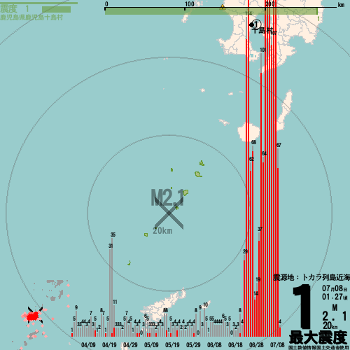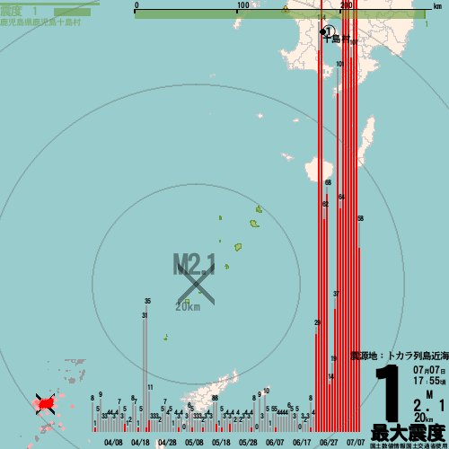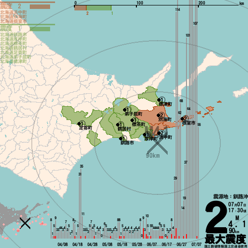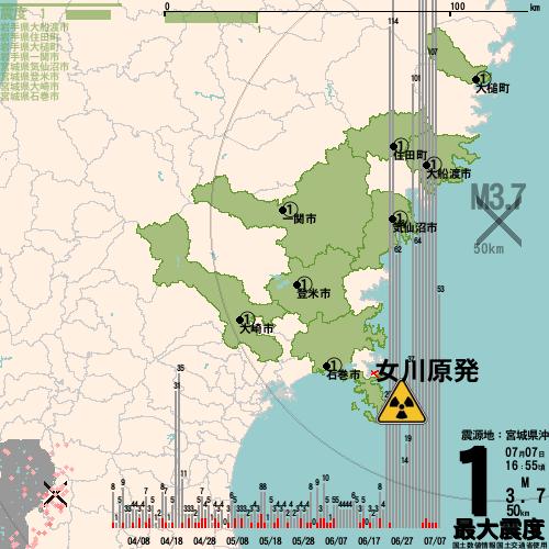 日本の地震の震度情報を、市区町村単位で、地図に描きます。地震は、地盤によって意外な揺れ方をしており、一概に近いほど揺れている訳ではありません。震度3以上の地震はプッシュ通知でお知らせします。津波注意報・津波警報が出ている場合、その旨を文字とともに、海を赤色に描画して警告します。過去の地震も閲覧できます。原子力発電所との位置関係を把握可能。