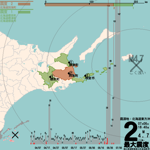 ◆気象庁の地震情報を引用加工して、独自の地図を生成し、表示しています。