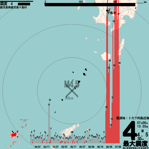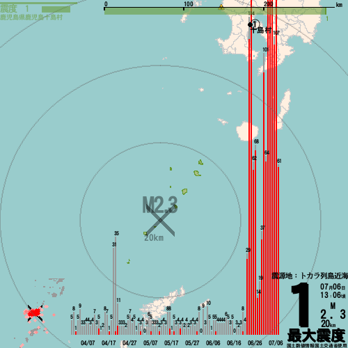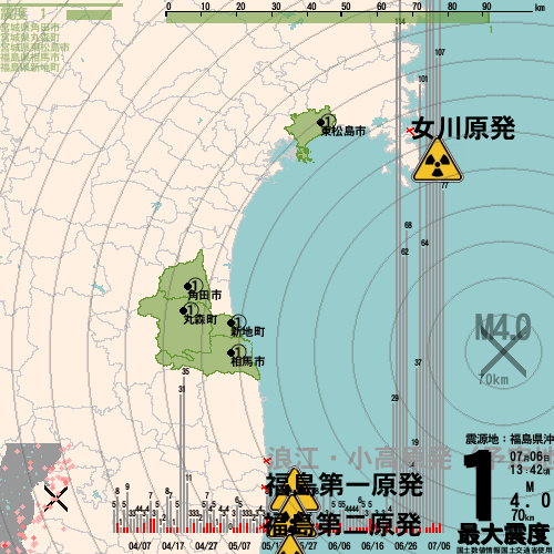 日本の地震の震度情報を、市区町村単位で、地図に描きます。地震は、地盤によって意外な揺れ方をしており、一概に近いほど揺れている訳ではありません。震度3以上の地震はプッシュ通知でお知らせします。津波注意報・津波警報が出ている場合、その旨を文字とともに、海を赤色に描画して警告します。過去の地震も閲覧できます。原子力発電所との位置関係を把握可能。