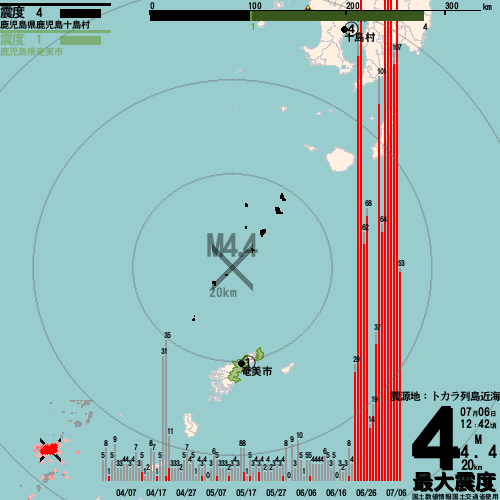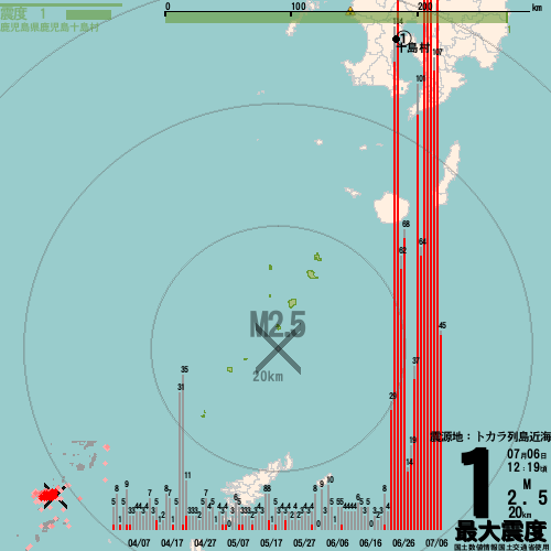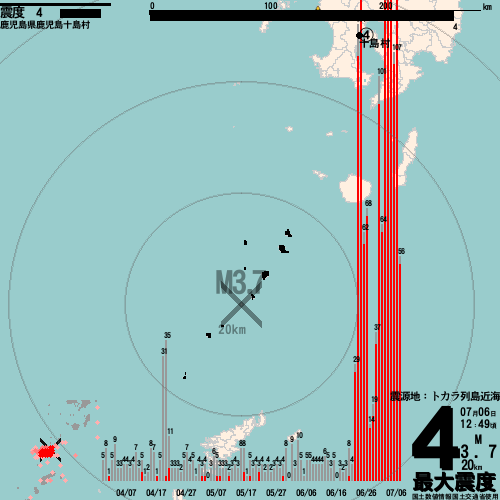 日本の地震の震度情報を、市区町村単位で、地図に描きます。地震は、地盤によって意外な揺れ方をしており、一概に近いほど揺れている訳ではありません。震度3以上の地震はプッシュ通知でお知らせします。津波注意報・津波警報が出ている場合、その旨を文字とともに、海を赤色に描画して警告します。過去の地震も閲覧できます。原子力発電所との位置関係を把握可能。