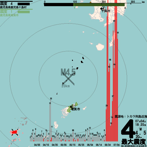 日本の地震の震度情報を、市区町村単位で、地図に描きます。地震は、地盤によって意外な揺れ方をしており、一概に近いほど揺れている訳ではありません。震度3以上の地震はプッシュ通知でお知らせします。津波注意報・津波警報が出ている場合、その旨を文字とともに、海を赤色に描画して警告します。過去の地震も閲覧できます。原子力発電所との位置関係を把握可能。