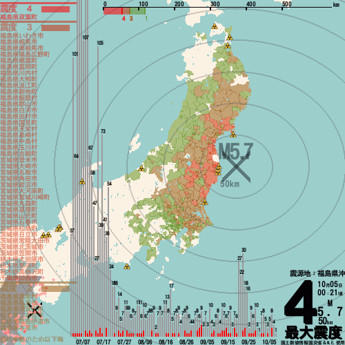 ◆気象庁の地震情報を引用加工して、独自の地図を生成し、表示しています。