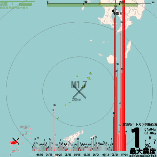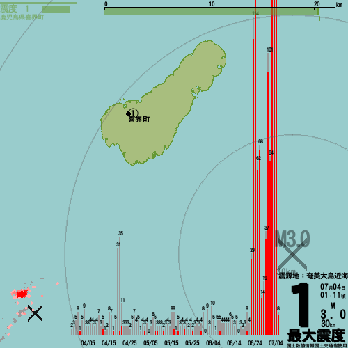 日本の地震の震度情報を、市区町村単位で、地図に描きます。地震は、地盤によって意外な揺れ方をしており、一概に近いほど揺れている訳ではありません。震度3以上の地震はプッシュ通知でお知らせします。津波注意報・津波警報が出ている場合、その旨を文字とともに、海を赤色に描画して警告します。過去の地震も閲覧できます。原子力発電所との位置関係を把握可能。