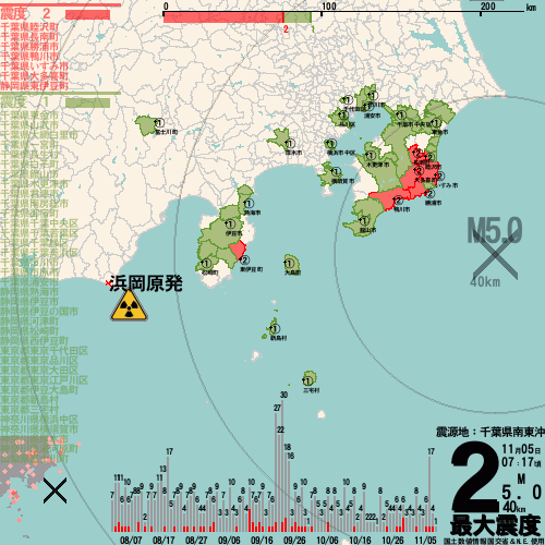 日本の地震の震度情報を、市区町村単位で、地図に描きます。地震は、地盤によって意外な揺れ方をしており、一概に近いほど揺れている訳ではありません。震度3以上の地震はプッシュ通知でお知らせします。津波注意報・津波警報が出ている場合、その旨を文字とともに、海を赤色に描画して警告します。過去の地震も閲覧できます。原子力発電所との位置関係を把握可能。
