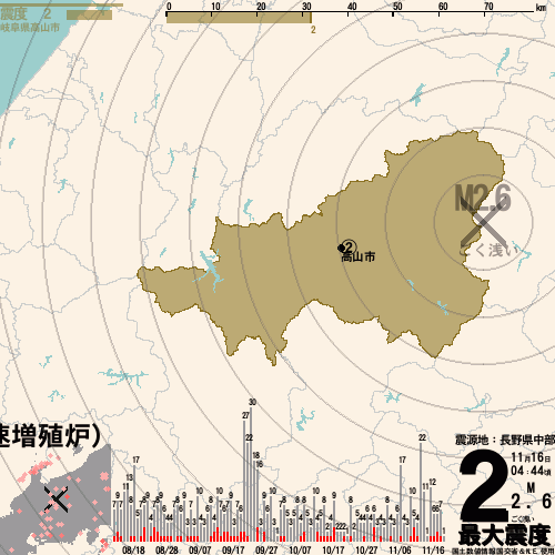 日本の地震の震度情報を、市区町村単位で、地図に描きます。地震は、地盤によって意外な揺れ方をしており、一概に近いほど揺れている訳ではありません。震度3以上の地震はプッシュ通知でお知らせします。津波注意報・津波警報が出ている場合、その旨を文字とともに、海を赤色に描画して警告します。過去の地震も閲覧できます。原子力発電所との位置関係を把握可能。