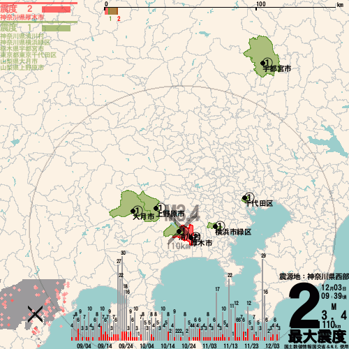 日本の地震の震度情報を、市区町村単位で、地図に描きます。地震は、地盤によって意外な揺れ方をしており、一概に近いほど揺れている訳ではありません。震度3以上の地震はプッシュ通知でお知らせします。津波注意報・津波警報が出ている場合、その旨を文字とともに、海を赤色に描画して警告します。過去の地震も閲覧できます。原子力発電所との位置関係を把握可能。