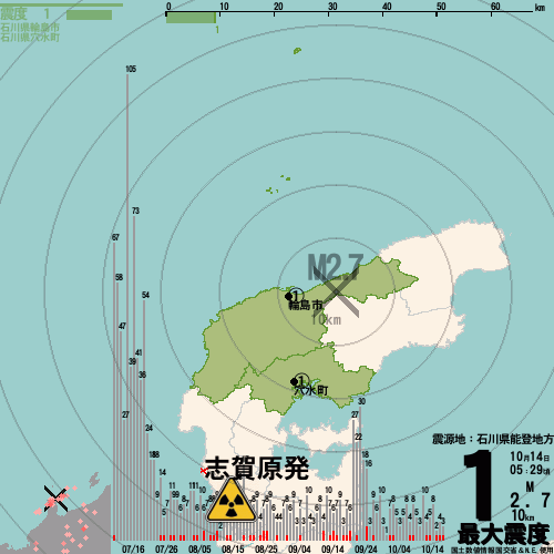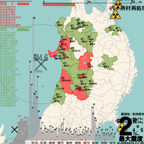 日本の地震の震度情報を、市区町村単位で、地図に描きます。地震は、地盤によって意外な揺れ方をしており、一概に近いほど揺れている訳ではありません。震度3以上の地震はプッシュ通知でお知らせします。津波注意報・津波警報が出ている場合、その旨を文字とともに、海を赤色に描画して警告します。過去の地震も閲覧できます。原子力発電所との位置関係を把握可能。