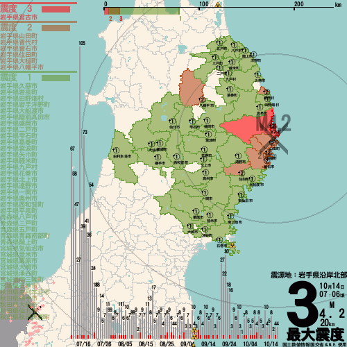◆気象庁の地震情報を引用加工して、独自の地図を生成し、表示しています。