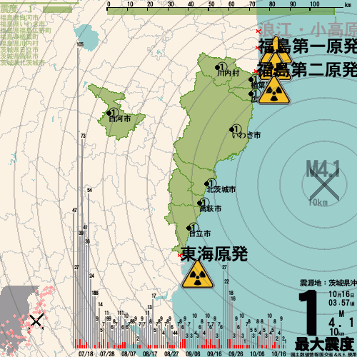日本の地震の震度情報を、市区町村単位で、地図に描きます。地震は、地盤によって意外な揺れ方をしており、一概に近いほど揺れている訳ではありません。震度3以上の地震はプッシュ通知でお知らせします。津波注意報・津波警報が出ている場合、その旨を文字とともに、海を赤色に描画して警告します。過去の地震も閲覧できます。原子力発電所との位置関係を把握可能。