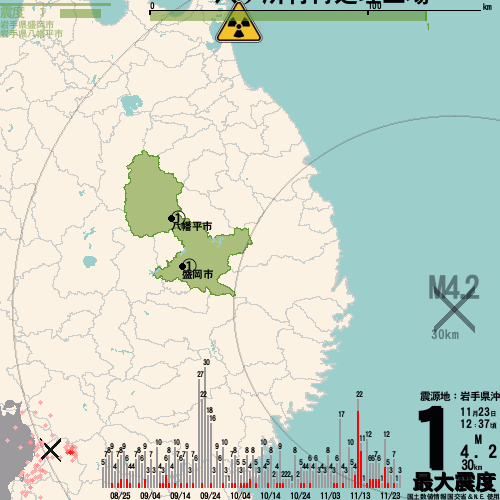 日本の地震の震度情報を、市区町村単位で、地図に描きます。地震は、地盤によって意外な揺れ方をしており、一概に近いほど揺れている訳ではありません。震度3以上の地震はプッシュ通知でお知らせします。津波注意報・津波警報が出ている場合、その旨を文字とともに、海を赤色に描画して警告します。過去の地震も閲覧できます。原子力発電所との位置関係を把握可能。