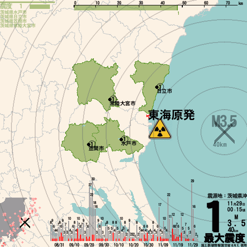 日本の地震の震度情報を、市区町村単位で、地図に描きます。地震は、地盤によって意外な揺れ方をしており、一概に近いほど揺れている訳ではありません。震度3以上の地震はプッシュ通知でお知らせします。津波注意報・津波警報が出ている場合、その旨を文字とともに、海を赤色に描画して警告します。過去の地震も閲覧できます。原子力発電所との位置関係を把握可能。