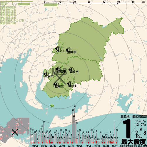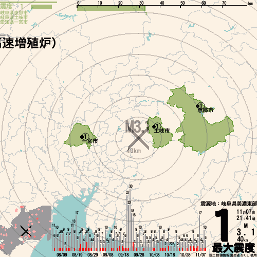 日本の地震の震度情報を、市区町村単位で、地図に描きます。地震は、地盤によって意外な揺れ方をしており、一概に近いほど揺れている訳ではありません。震度3以上の地震はプッシュ通知でお知らせします。津波注意報・津波警報が出ている場合、その旨を文字とともに、海を赤色に描画して警告します。過去の地震も閲覧できます。原子力発電所との位置関係を把握可能。